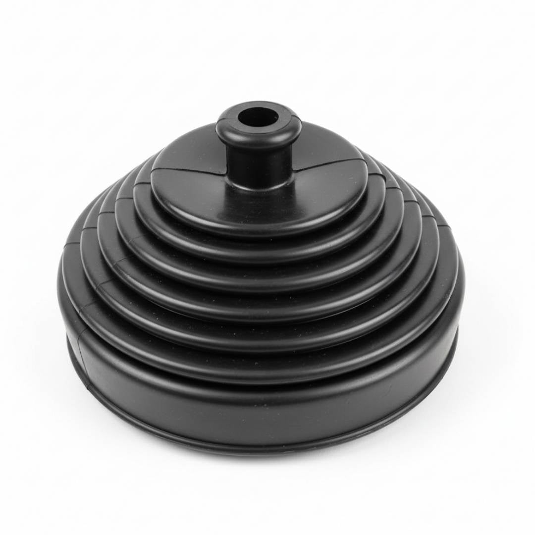 Realizzata in gomma nera elastica di alta qualità, questa cuffia riproduce fedelmente il design a gradini (concentrici) originale Alfa Romeo. Questo permette alla leva di muoversi liberamente in tutte le marce senza che la gomma si "tiri" o si spacchi precocemente. È perfetta sia come cuffia principale (su modelli come Giulia TI/Super) che come cuffia di protezione sottostanti i rivestimenti in finta pelle.